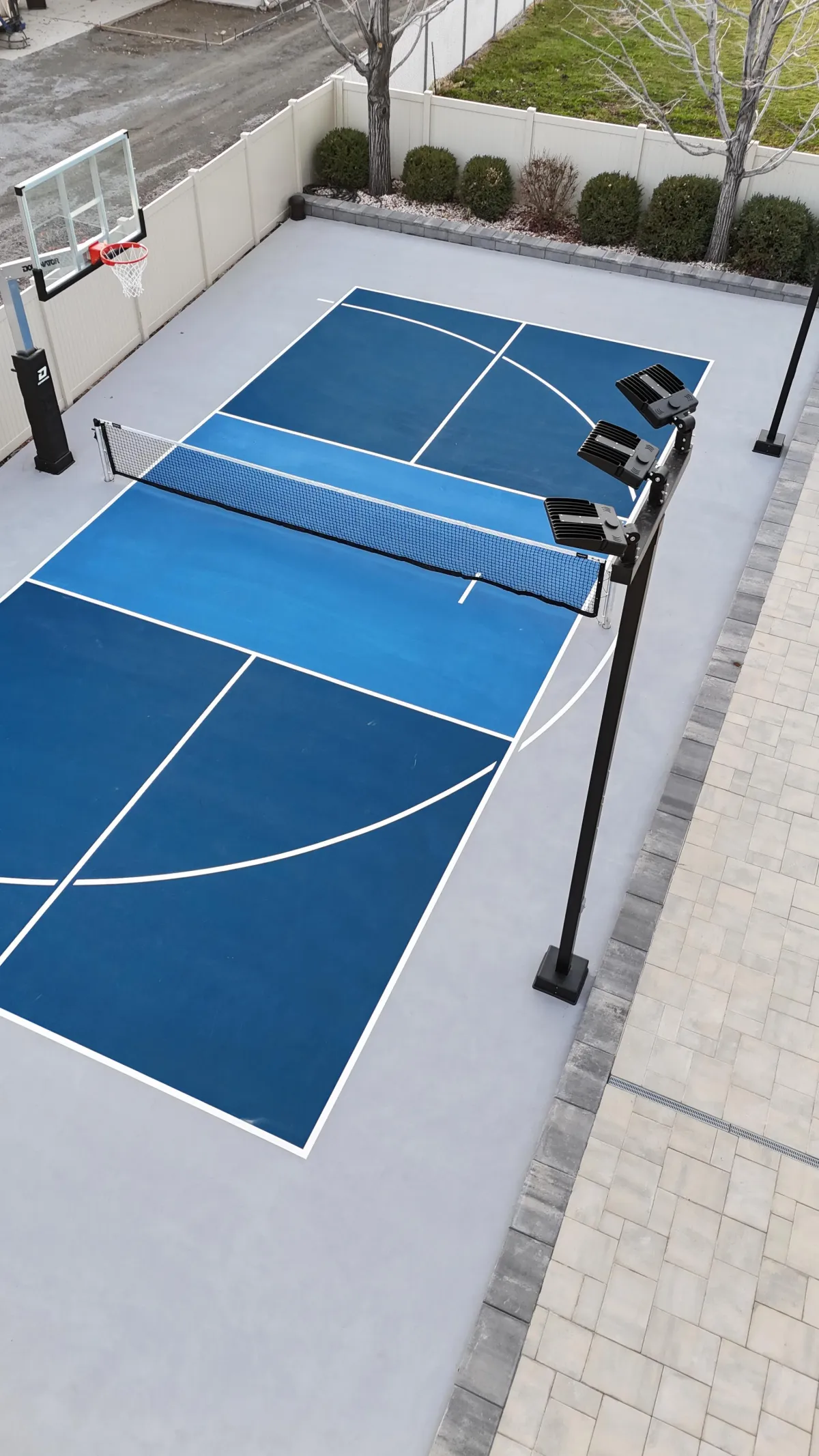Post-tension concrete is the Gold Standard for courts. Reinforced concrete where steel cables (tendons) are tensioned after the concrete is poured and hardened. This method strengthens the concrete, No cracks, No settling, No control joints.